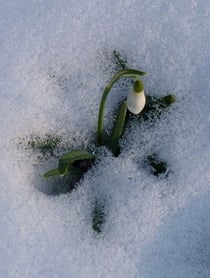 Auf der Wiese noch immer Schnee, vor dem Haus auf der Südseite ist der Schnee vor der Wand schon weggeschmolzen, ansonsten ist der Schnee schon etwas zusammengesunken. An der Traufe hängen wieder jede Menge kleine Eiszapfen.