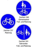 | Radweg erlaubt? | ja | nein, nur wenn es das Zusatzschild "Mofas frei" erlaubt | |
